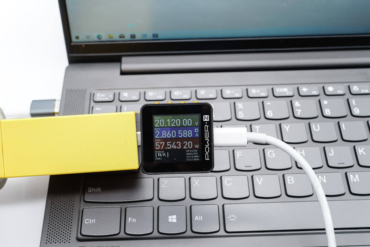 먼저 고속충전에 대해 알아보겠습니다. 스트레이트 헤드 마그네틱 어댑터가 있는 100W 충전기를 사용하여 20.12V 2.{5}}57.54W의 전원으로 노트북을 충전하세요.