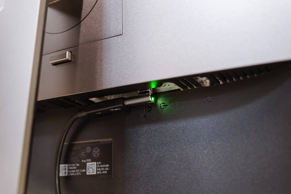 다음으로 비디오 전송을 살펴보겠습니다. 어댑터를 통해 Thunderbolt 3 데이터 케이블을 Dell U2720QM 4K 모니터에 연결합니다.
